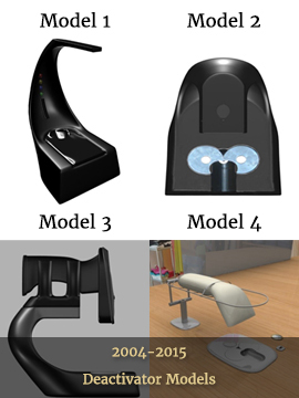 Finally, I designed and developed new DesignerTag Detachers which matched the DesignerTag Design and could be completely secured by its internal, turnable magnet. It was developed with our Hard Tag Manufacturer through 17 years (ended 2013), Dong Li. The Designer Detacher has both an RF as well as an AM label mounted inside to avoid theft. More than 150 million DesignerTags have been sold by DesignerTag International. The DesignerTag is now the most copied Hard Tag in the history of the EAS. Probably 300 – 400 million have been sold as copies.